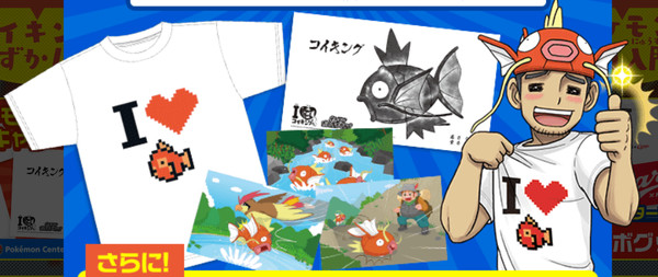 "I Love Koiking" originates on the "I Love Koiking-san" Magikarp fan page, which celebrates the flopping carp more with little-known facts, Pokemon fishing tips, and links to Magikarp merchandise. This includes items like Koiking-yaki (based on taiyaki, sweet fish pastry) filled with "natural Sinnoh bean paste" and T-shirts with "Carp × Koiking" logos (the Hiroshima Toyo Carp is a baseball team).