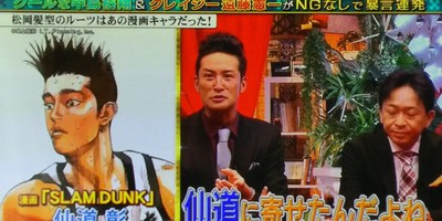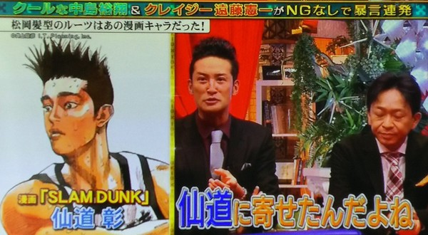 Masahiro Matsuoka, the drummer and vocalist for the rock band Tokio, stands out with his hairstyle, which stands up in the front. On July 27, he revealed on Tokio's TV program, Tokio Kakeru, where he got the look: Slam Dunk.