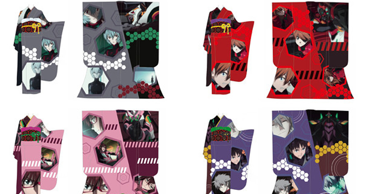 Designs feature characters Rei Ayanami, Asuka Langley Shikinami, Mari Illustrious Makinami, Shinji with Kaworu, the Eva units, and one design includes all the characters. Each kimono is expected to cost US$2,000.