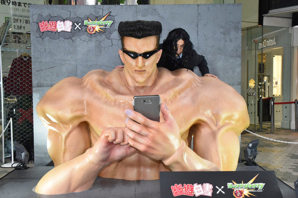 The Toguro statue is on display outside of Laforet in Harajuku, Tokyo until November 14, when it shifts to MODI in Shibuya until November 16. Visitors can climb on it from 11 AM to 7 PM. If you're not in the area, there are other ways of charging up Toguro's muscles: you can take a picture of yourself using the camera app Snow, which has stickers related to Yū Yū Hakusho and Monster Strike, or you could tweet your thoughts on the Toguro episodes of the Dark Tournament Arc, which are available to watch for free until December 2 (Japanese only). In any case, use the hashtags #幽白モンスト ("YuHakuMonst") or #戸愚呂化計画 ("Project Change Toguro").