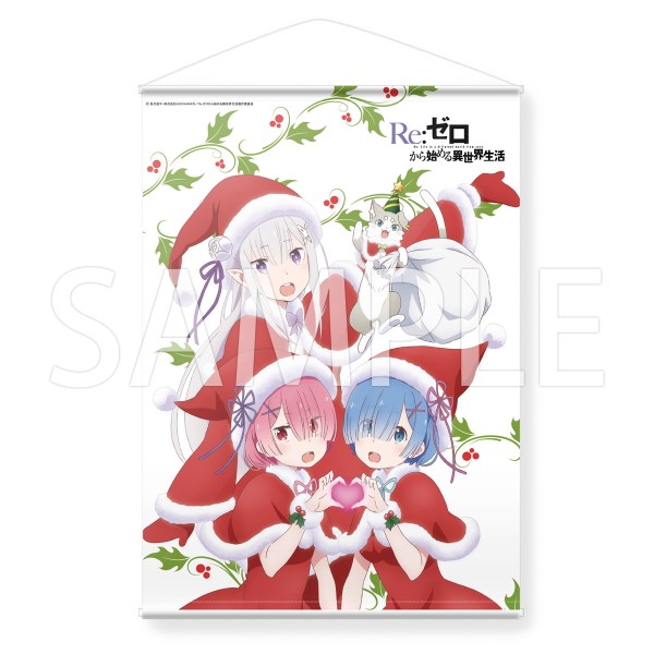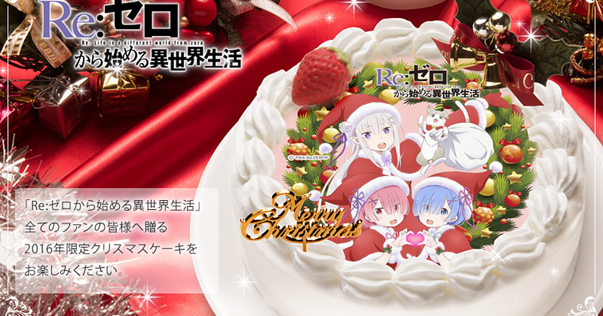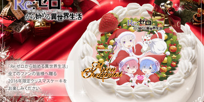 Re:ZERO -Starting Life in Another World- is the most popular cake this year. AniSugar also sells other items showing off Emilia and others in their Christmas garb: a wall scroll, hug pillow, rose-colored chanmery (a sparkling drink for festive occasions), snow globes, and badges.