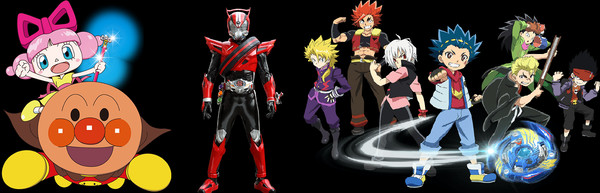Source: Anime! Anime!: Kazuko Ogita; Images from Soreike! Anpanman Omocha no Hoshi no Nanda to Runda official website, Kamen Rider Drive official website and Beyblade Burst official website