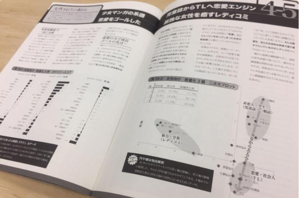 Midori Makita can rightfully call himself a manga expert — he's read thousands and thousands of pages of manga over many years. But he works as a statistical analyst and approaches manga from an analytical point of view, collecting data from each series he reads to reveal what it says about the larger manga-reading audience. So far he's mostly focused on erotic manga aimed at a male readership, but last year he turned to shōjo and josei manga to find out what themes and characters drive female interest. He's published his findings in a dōjinshi, Ren'ai Tōkei ("The Statistics of Romance"), which is available at Comiket and online.![]()