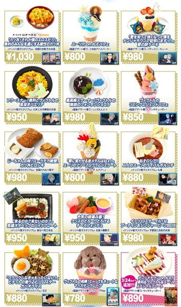 As usual, the indoor theme park's newest anime theme will feature a special collaboration food menu. Yūri's favorite food, pork cutlet bowl, will be available. Pichit's hamster and Victor's dog feature in two of the dishes. People who order from the special menu will receive an original postcard.