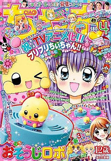 The April issue of Shogakukan's Ciao magazine bundled the Pri Chi Osōji Robo CHI-01 autonomous robotic vacuum on Friday. The vacuum inspired by Hiromu Shinozuka's PriPri Chi-chan!! manga, which runs in the magazine, is the first home electronic device to bundle with a magazine in Japan. The YouTube Channel Omocha Daisuki Dōga (Toy Love Videos) began streaming a video previewing the vacuum on Wednesday.