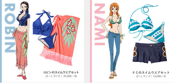 Nami, Robin, Hancock, and mermaid Shirahoshi are inspiring a combination of women's lingerie and swimwear. The items go on sale on April 12 both online and in Shibuya, Ikebukuro, Namba store locations.