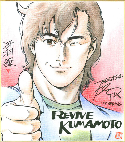 Kyushu natives Tsukasa Hojo and Ryuji Tsugihara will participate in a talk with Kumamoto native Nobuhiko Horie (City Hunter's editor) as the festival's opening event on April 15, and Hojo and Horie will have another talk the following day. City Hunter's final chapter will also be screened as a motion comic, and attendees can watch a video of Hojo drawing the event's key visual (seen below).