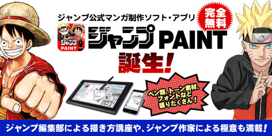 Shonen Jump and MediBang launched the Jump Paint app on Thursday. The free PC, tablet, and smartphone paint tool allows for manga creation using different types of pens, tones, and fonts. The app is available in nine languages: Japanese, English, Korean, Mandarin, Cantonese, Russian, Spanish, French and Portuguese. The app is cooperating with Shonen Jump Rookie, a webcomic portal for novice artists to make it easy to upload work.