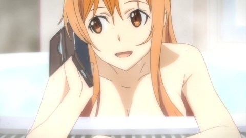 Even with the limited cleavage, some fans have complained that English-language theatrical screenings were censored further with zooming in on Asuna's shampoo bottle and cell phone.