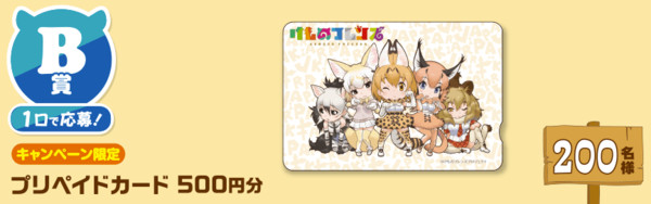 The B Prizes are 200 exclusive Kemono Friends-themed prepaid cards worth 500 yen each.