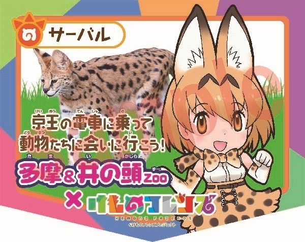 Keio Corporation, Tama Zoological Park, and Inokashira Park Zoo are partnering for Kemono Friends' newest zoo collaboration. The "Keio no Densha ni Notte Dōbutsu-tachi ni Ai ni Ikō! Tama & Inokashira Zoo x Kemono Friends Stamp Rally" (Let's Ride Keio Trains and Go Meet Animals! Tama & Inokashira Zoo x Kemono Friends Stamp Rally) event will be held from September 21 to October 22.