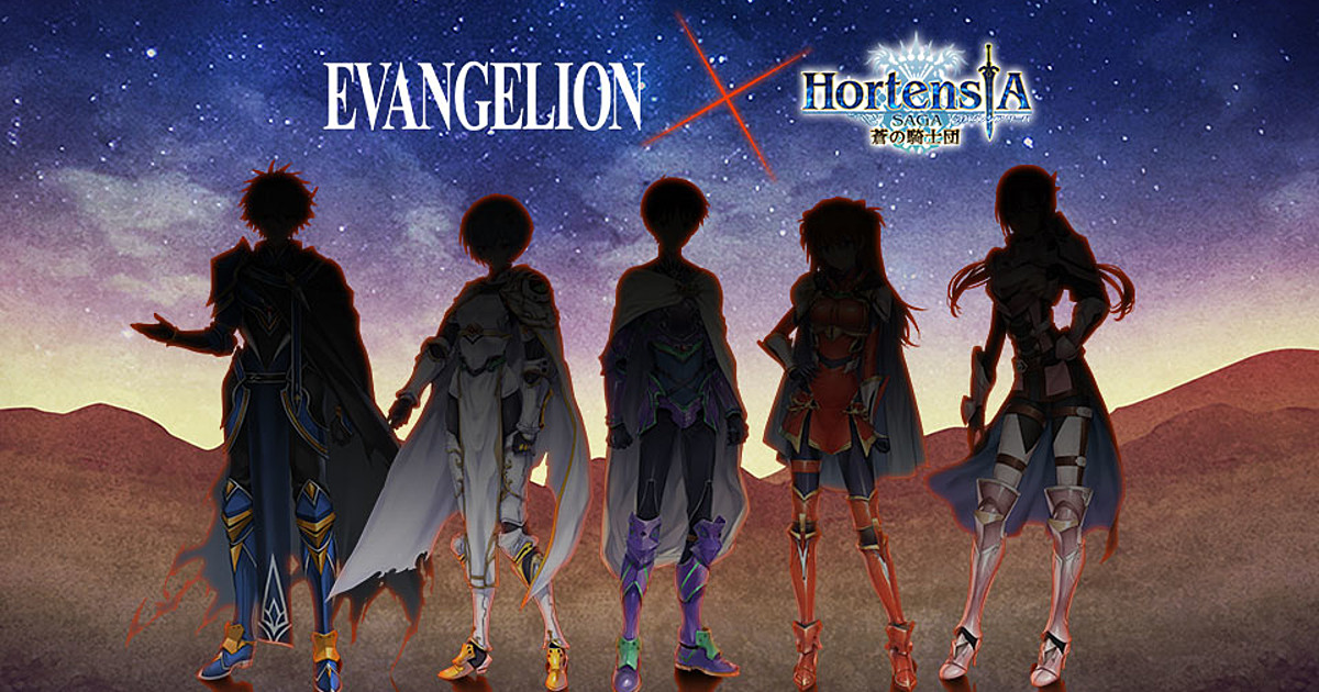 The staff of Sega's Hortensia Saga smartphone role-playing game announced on the 29th episode of its official livestream on Friday that the game is collaborating with Evangelion. The game's official website opened a teaser page for the campaign that features silhouettes of Shinji, Asuka, Rei, Kaworu, and Mari.