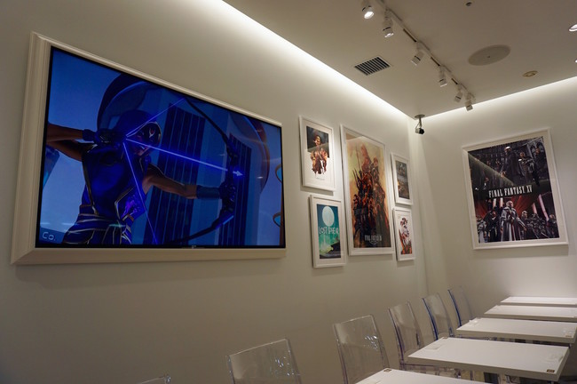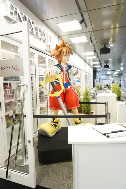 The café decorations feature framed Kingdom Hearts art, and a framed autograph by game series director Tetsuya Nomura.