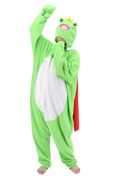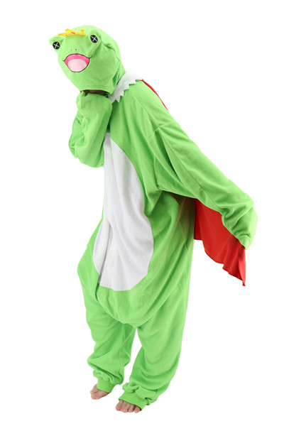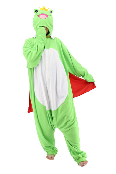 The frog prince outfit includes a frog face, crown, and royal mantle. The pajamas fit people of about 145 to 180 centimeters (about 4'9" to 5'11") in height. They cost 6,500 yen (about US$57), and they are slated to ship starting around February 1.
