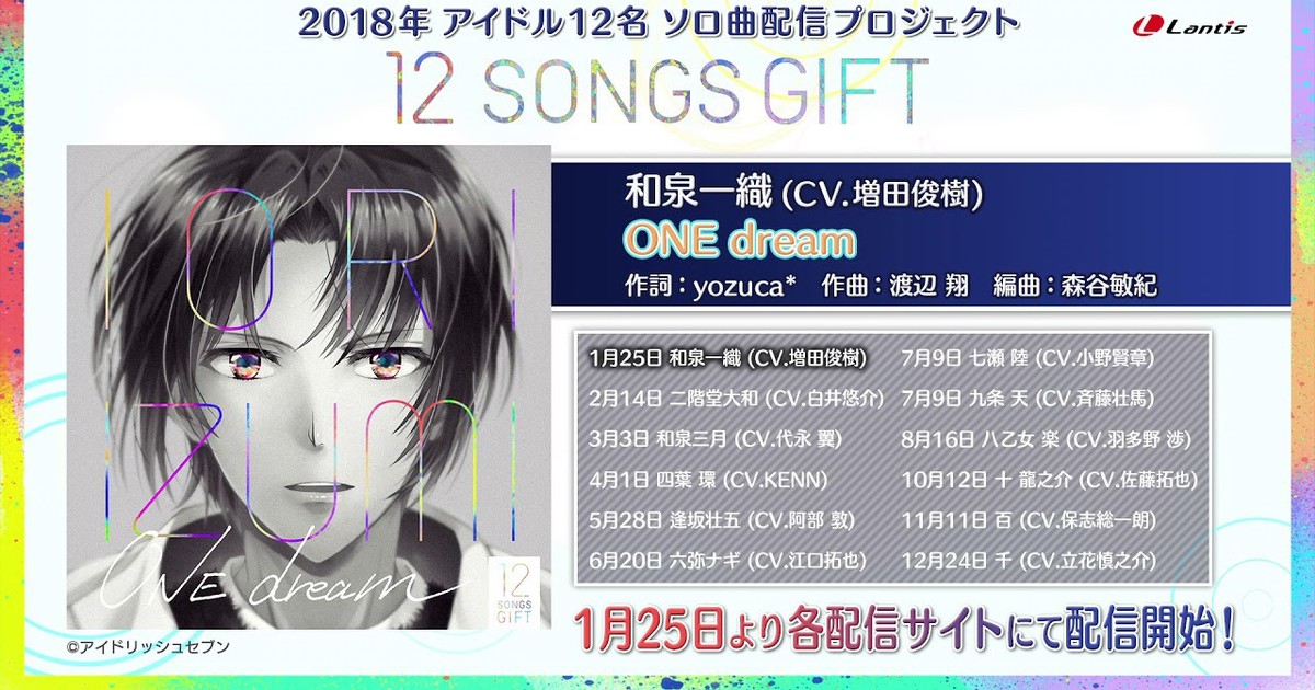 The IDOLiSH7 idols are starting the new year with birthday celebrations. The characters from the series are each releasing a new single on their birthday as part of the "12 Song GIFT" campaign, and this month it was Izumi Iori's turn. The cool younger brother and member of the IDOLiSH7 group released the single ONE Dream on January 25 and it flew to the top of the iTune charts upon release.