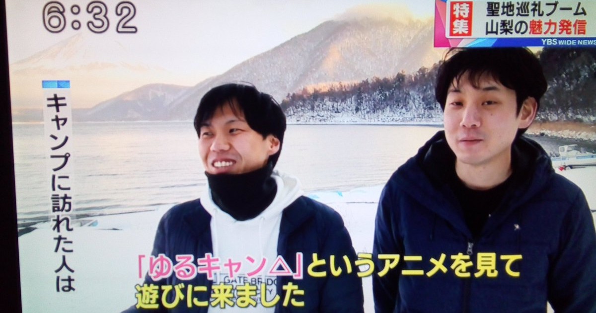 Yamanishi Broadcasting System's YBS Wide News program recently aired a feature on the Yurucamp (Yurukyan△, Laid-Back Camp Δ) anime. According to the program, the anime has led some fans to try winter camping near Mount Fuji.