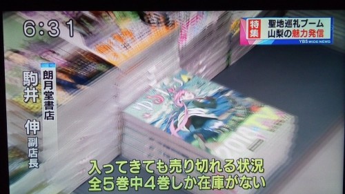The manager of a bookstore in Kōfu, Yamanashi reported on the program that the anime has led to an unexpected boost in sales of the original manga. He said that all of the manga's five volumes except for the fourth have been sold out since early January, despite additional printings.