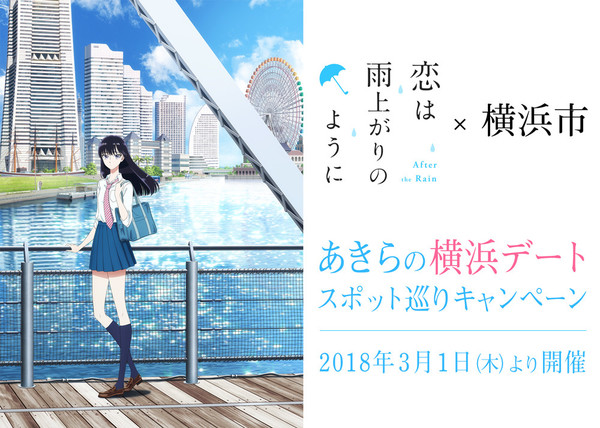 The television anime adaptation of Jun Mayuzuki's Koi wa Ameagari no youni (Love is Like After the Rain) manga is collaborating with the city of Yokohama, Kanagawa for the "Akira's Yokohama Date Spot Tour Campaign." The campaign will run from March 1 to 30.