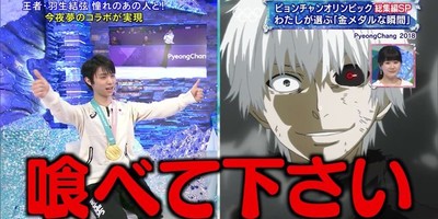 Hot off his Olympic gold medal win at the PyeongChang Olympics, Japan's Yuzuru Hanyu confessed another dream on national television: he wants to be eaten by Tokyo Ghoul's Ken Kaneki.