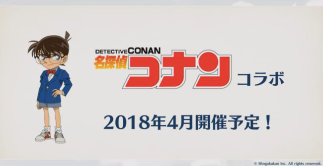 The first new collaboration is with Gosho Aoyama's Detective Conan manga and anime series in April. The event also showed a character design for Conan Edogawa (Minami Takayama will reprise the role for the collaboration).