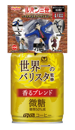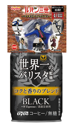 Japanese beverage company DyDo Drinco is offering five different Lupin the Third character mini figures on two of its coffee drinks. The drinks with bundled figures will debut at convenience stores and other retailers on March 12.