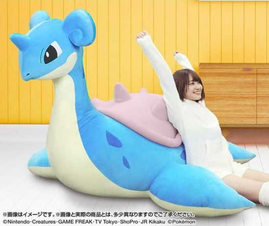 This new "Lapras You Definitely Want to Ride On" plush is 2 meters (6.5ft) long, 2 meters wide, 1.2 meters (3.9ft) tall, and weighs 16kg (35lbs). Premium Bandai began taking pre-orders on Thursday.