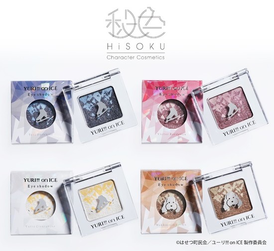 From the HiSOKU Character Cosmetics series comes a lineup of four eyeshadows inspired by the hit figure skating anime Yuri!!! on Ice. The eyeshadows will be available online and at hobby and character goods shops across Japan this July.