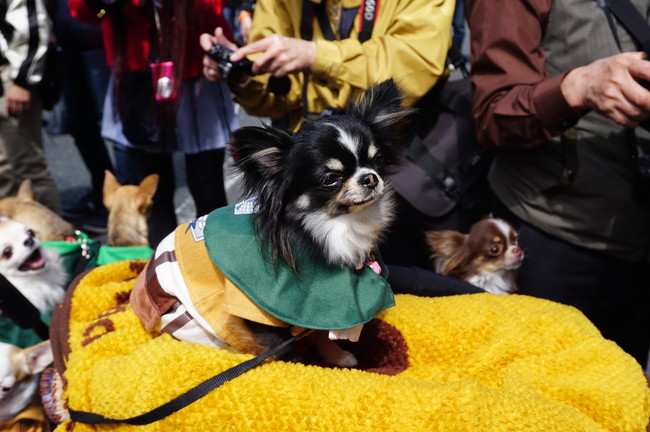 Some of the stars of the festival though were cosplaying pets, such as these strollers of dogs all dressed in Survey Corps outfits.
