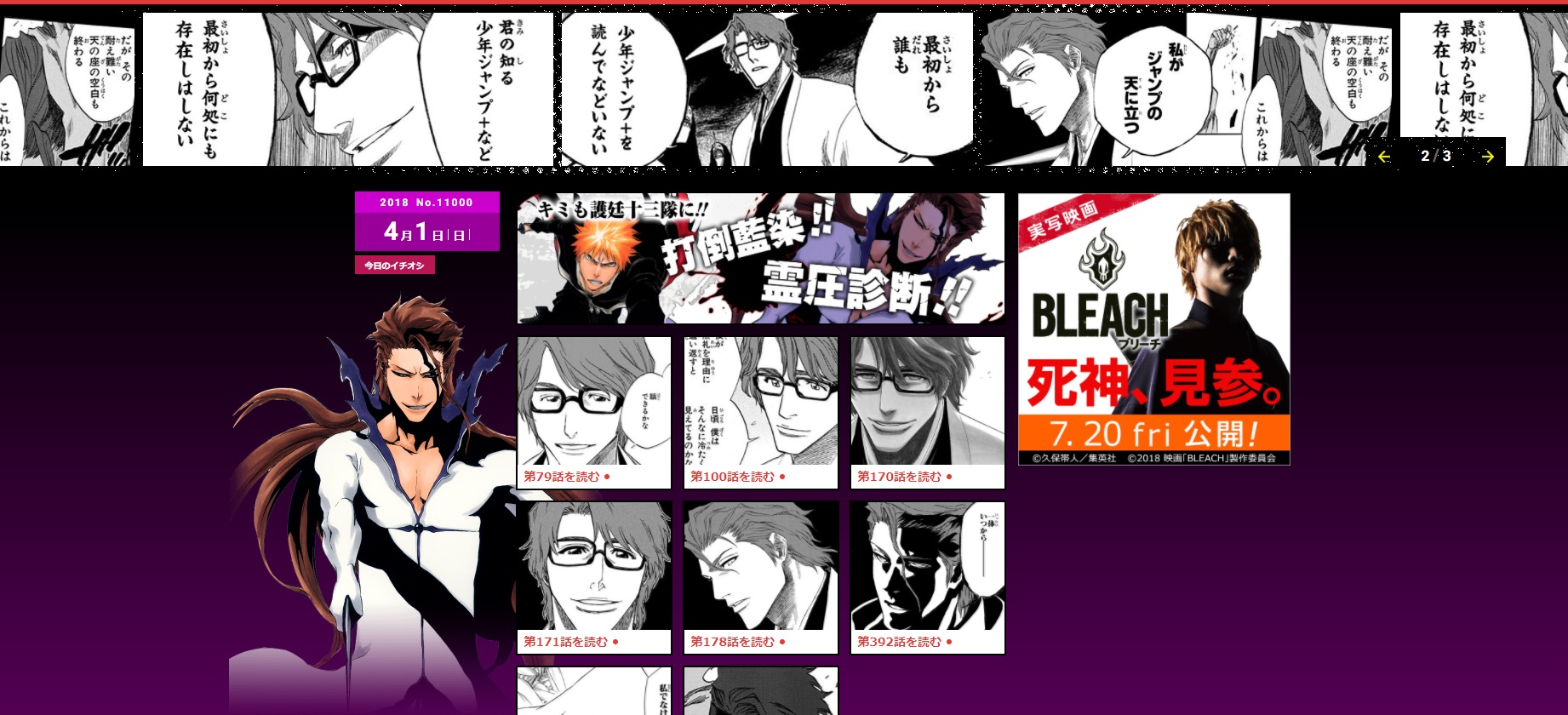 Bleach's Aizen took over the manga website for the day.