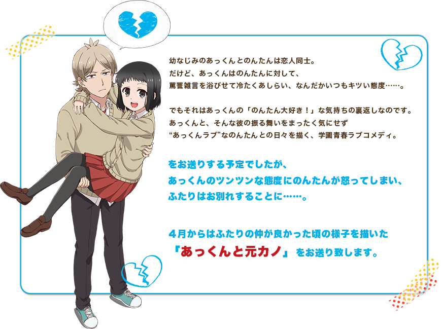 Akkun to Kanojo (Akkun and His Girlfriend) changed its name to Akkun to Moto Kanojo (Akkun and His Ex-girlfriend).