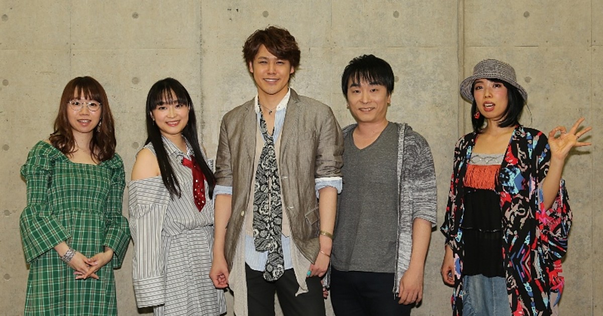 From left to right: Sayuri Yahagi, Asami Imai, Mamoru Miyano, Tomokazu Seki, and Kanako Itou.