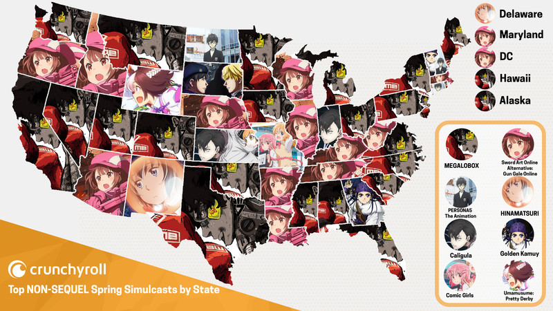 Crunchyroll rolled out its latest United States popularity map for the current anime simulcast season on Tuesday. The map shows the service's top non-sequel anime series in each state for the spring 2018 season based on current viewers of each show's most recent episode.