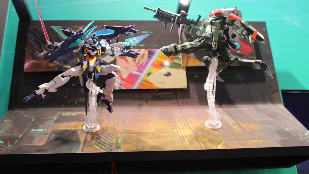 Predictably, Gundam Build Divers has inspired new model kits, which are mostly remixes of familiar mechs from other Gundam shows. The booth looked very impressive; many of the mechs were shown in battle poses from the anime.