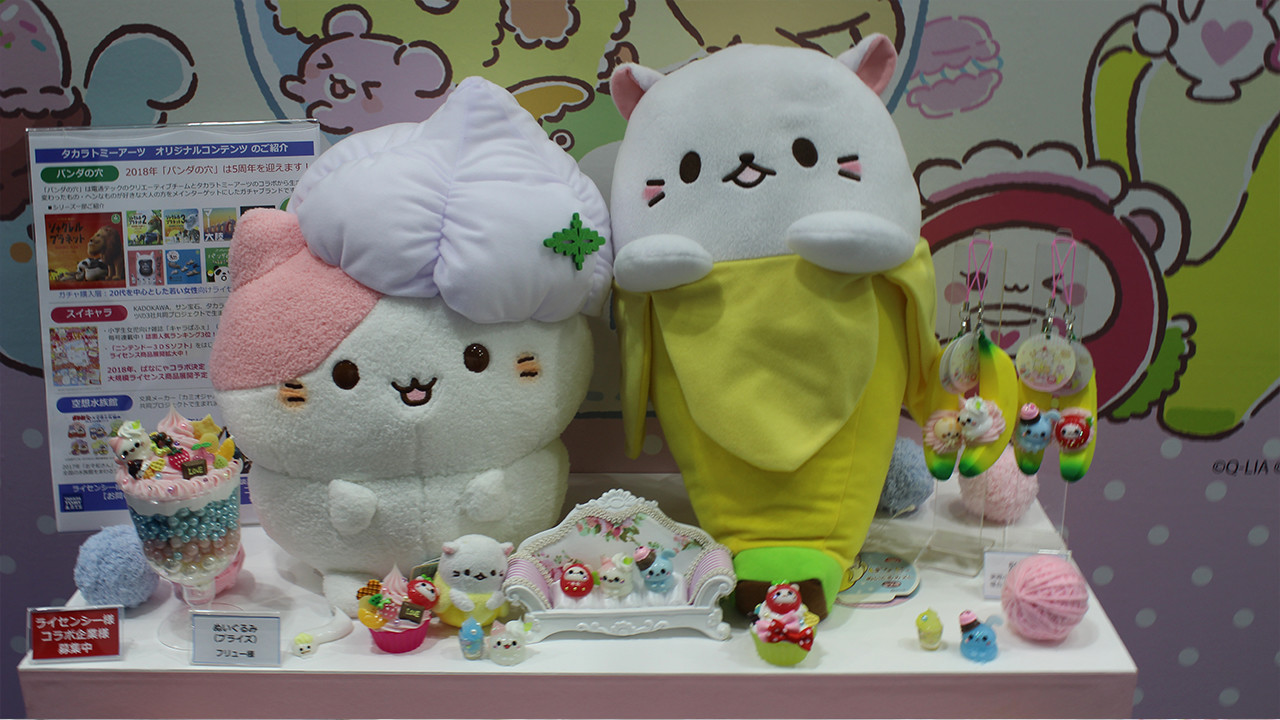 Collaboration toys with various anime series were on display at the TAKARA TOMY A.R.T.S booth, including with Mr. Osomatsu, Attack on Titan, and Bananya.