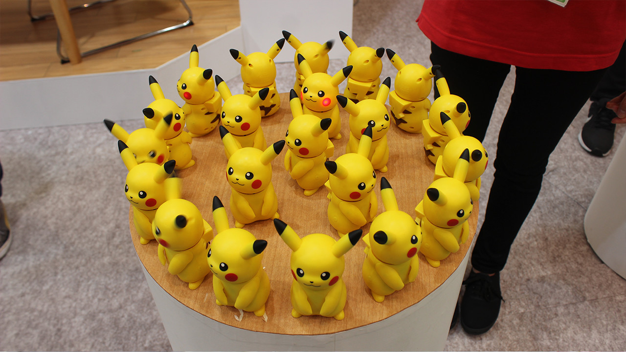Takara Tomy also showed off its own Pokémon robots - albeit on a much less ambitious scale. The Pikachu can converse with you, but the only words they can say are “Pika!” and “Pikapi!” Takara Tomy's booth had entire shelves showing off the pint-sized Pikachus, all cocking their heads and making cute noises.