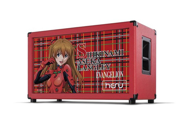 The new merchandise lineup includes guitar cabinets, a bass preamp, guitar pick sets, and microfiber guitar cloths. The guitar cabinets are special versions of Polish company HESU's Modern M212 Custom Cabinet. The collaboration models feature two designs with Evangelion Unit-01 and one design each with Asuka and Rei. The guitar cabinets will cost 129,600 yen (about US$1,180), and only 30 of each version will be available.