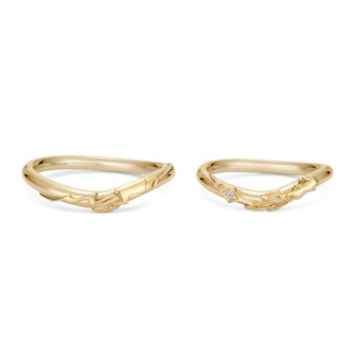 Men's and women's wedding bands are also available in two different designs, in the same material choices. Prices range from 73,000 yen (US$650) to 115,000 yen (US$1,025).