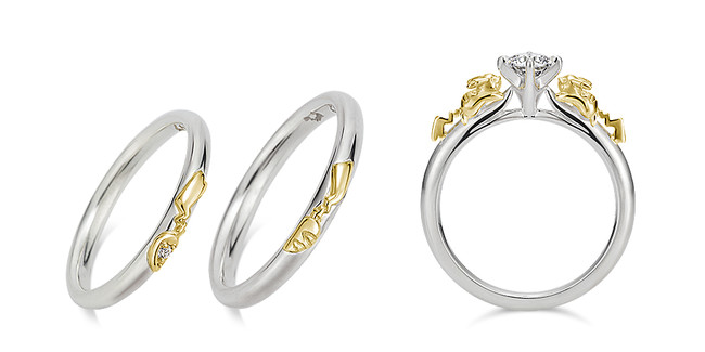 The engagement rings come in two different designs and are available in 18-karat white gold and 18-karat yellow gold, 18-karat white gold, 18-karat yellow gold, platinum and 18-karat yellow gold, or platinum. Pries range from 88,000 yen (about US$783) to 135,000 yen (US$1,200). The diamond is sold separately for the rings.