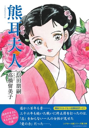 Eisner Hall of Fame manga artist Rumiko Takahashi provided the cover illustration for Tomoji Nobuta's Kumagami Fujin novel, released on Tuesday. The book is the third in the "Theater Shōsetsu Series," a light novel series aimed at adult readers.