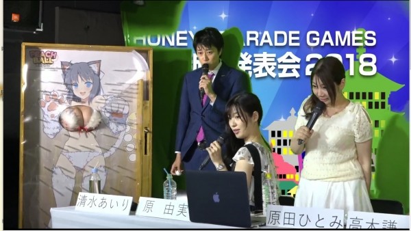 Series producer Kenichirō Takaki appeared on the livestream to discuss the anime and demo the game. After the stream of the actual gameplay concluded, the event's hosts participated in a real-world version of the pinball game. Gravure idol Airi Shimizu, who cosplayed as the game's version of the character Yumi, became part of an upright pinball game. Other women on the show shot pinball balls toward Shimizu's breasts, which protruded through an opening in the back of a pinball board that featured an image of Yumi.