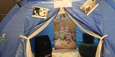 Although it may seem off-brand for an anime series about mountain-climbing to get a collaboration hotel in the middle of Tokyo at first glance, the hope is that anime fans will be encouraged to stay at the hotel, especially during Comiket. Bay Hotel expressed their hope that foreigners will be encouraged to stay at the hotel during the collaboration period. Inside the communal room there is a board explaining the history of Encouragement of Climb in Japanese, English, and Chinese.