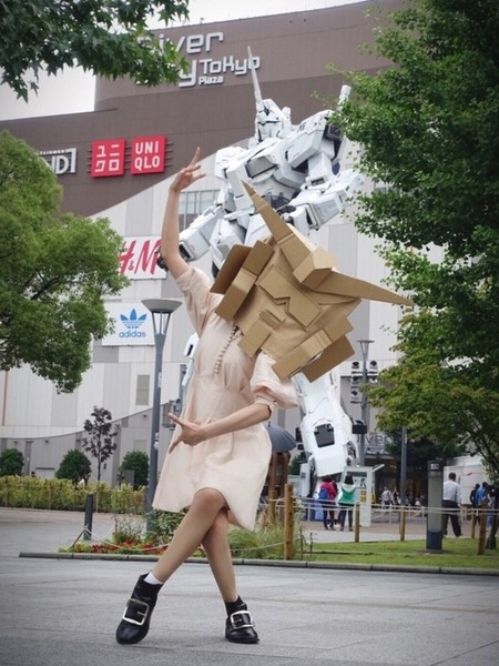 Fashion App User Combines Cardboard Gundam Head With Wild Poses