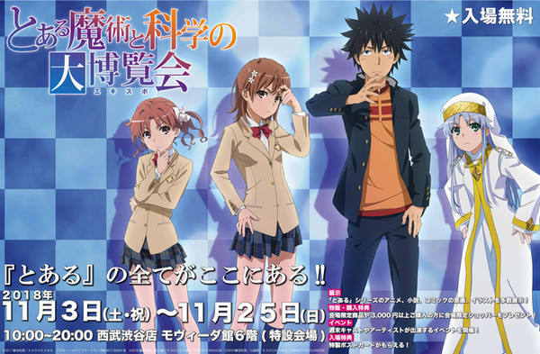 The A Certain Magical Index franchise is inspiring the "Toaru Majutsu to Kagaku no Expo" (A Certain Magical and Scientific Expo) event at the Movida shop in Tokyo's Seibu Shibuya department store. The free event will run from November 3-25.