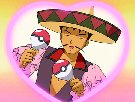 The official Pokémon Jōhō-kyoku account contributed a fan-favorite ending theme song from the anime series. The tweet reads "O! NE! E! SA! N!," and when all five syllables are read together, they form the word "oneesan." The word is used to address young women, a demographic Takeshi (Brock) is known for pursuing. The lyric is from "Takeshi no Paradise" (Takeshi's Paradise; seen above right), the ninth ending theme song of the original anime series. The song also featured in the anime itself and became a sort of running joke as Takeshi had to continually resort to it to entertain people.