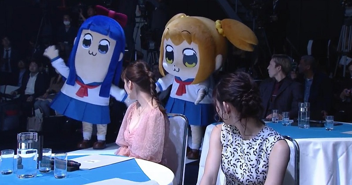 Pop Team Epic was lucky number 13 and Popuko and Pipimi appeared on stage to acknowledge their award. The animation duo AC-bu also attended to give a live performance of the series' "Hellshake Yano" sequence.