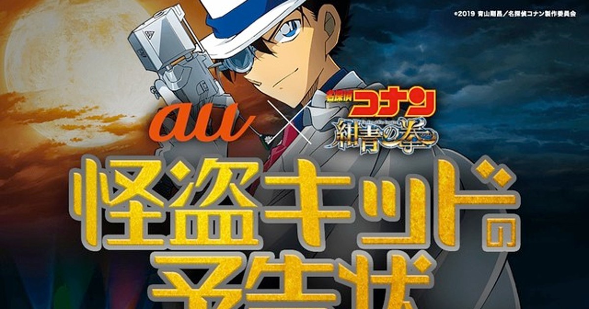 Detective Conan's famous phantom thief Kaito Kid sent a calling card to Japanese mobile phone company au, which appears in the company's latest ad for a student discount phone plan. His message was: "I will take this ad." The ad aired on February 23 during the episode of Detective Conan.