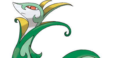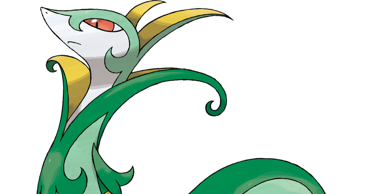 Serperior is the third-stage evolution of Snivy, the grass-type starter Pokémon of the Black and White games. Sugimori is quoted in the interview translation as saying that Serperior was "designed with the concept of a European knight in mind, kind of like Lady Oscar from The Rose of Versailles."