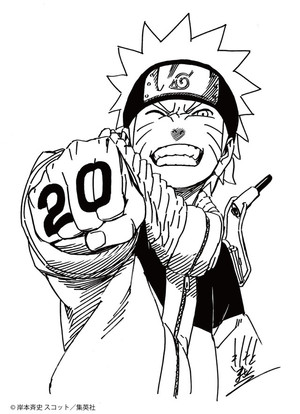 New Naruto merch featuring art drawn by series creator Masashi Kishimoto will be sold at the "Naruto to Boruto the Live 2019" event on October 5 and 6, celebrating the series' 20th anniversary. The artwork, which depicts Naruto holding out his fist with the number 20 written on it, will be used on shirts and clear files.