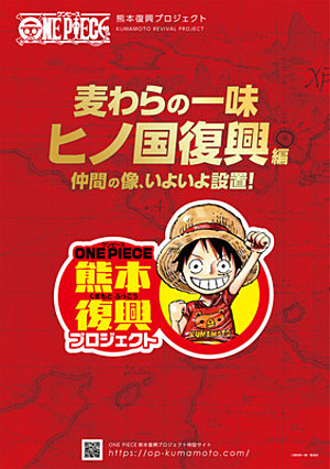 One Piece started a campaign in 2016 to revitalize the Kumamoto Prefecture after it was badly damaged by earthquakes. The latest move is to establish statues of the Straw Hat Pirates throughout the prefecture distribute leaflets showing their locations, along with information regarding the disaster-affected regions. This phase of the project is called the "Hi no Kuni Restoration Arc." ('Hi no Kuni' refers to the land of the rising sun - that is, Japan.)