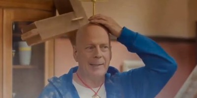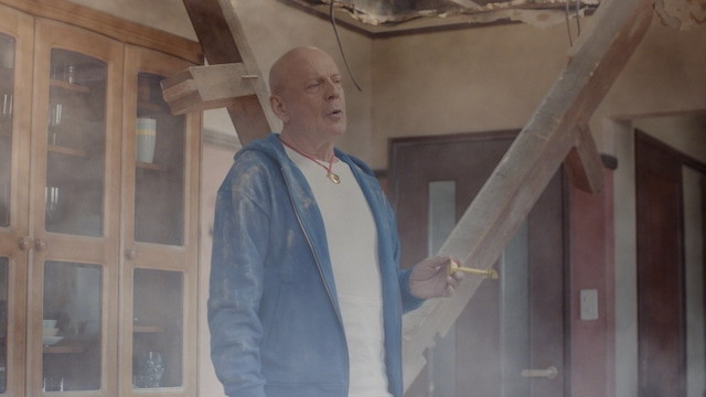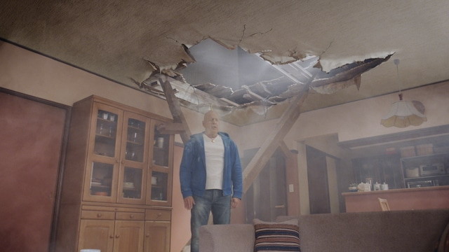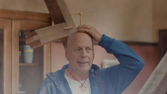 Actor Bruce Willis Crashes Into a House as Doraemon in TV Ad